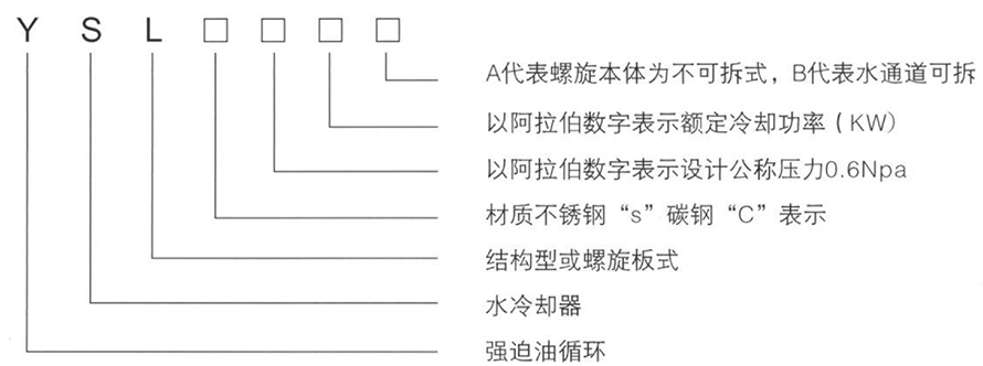 例2:YSLC-0.6-200- B為水通道可拆式螺旋板冷卻器,材質為碳素鋼,設計壓力為0.6Mpa.換熱面積為20m2 (冷卻功率為200KW)。