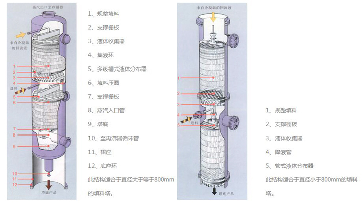 規整填料塔的分離性能取決于內件,即填料、分布器、收集器等。同時也取決于許多參數,如氣體負荷、液體負荷、物料性質、操作壓力、填料濕潤性能和液體分布不均勻等等。至今不能由填料的幾何形狀來準確計算塔的分離性能,需要通過填料塔的理論和不同條件下通過試驗塔來測定準確數據。用戶可根據資料以近似程度確定塔的尺寸和需要的填料高度。如果需要經濟、合理的結構形式,我廠愿與用戶密切合作。