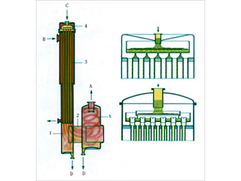 除了管材尺寸以外,選擇合適的液體分布裝置對獲得潤濕很重要,兩種液體分布裝置。由于加熱管中液體量低且流速快,產品停留時間頗為短暫,因此,可以溫和地蒸發(fā)熱敏性物料。
